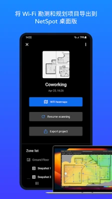 NetSpot 是一款专业的安卓WiFi热图工具,助您轻松分析网络、预测信号强度、检测干扰。作为备受网络专家推崇的移动与桌面平台领先WiFi检测工具,它提供可靠的WiFi规划和性能洞察。
