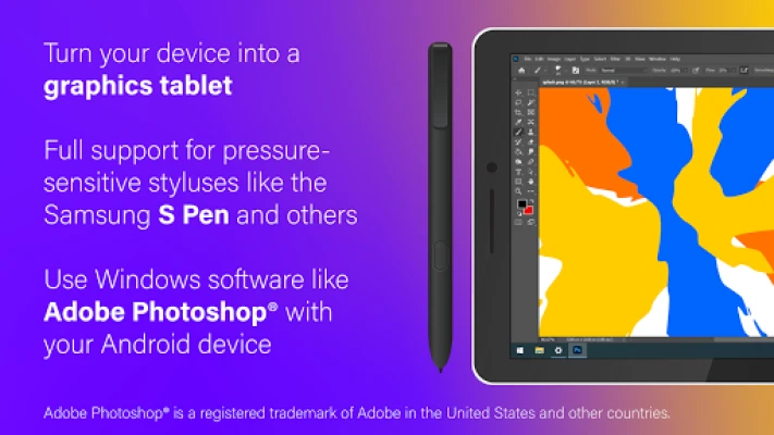 SuperDisplay 不仅仅是一个显示扩展工具,它还能将您的安卓设备蜕变为一款专业的图形输入板。对于数字艺术家、设计师和创意专业人士而言,SuperDisplay 是一个理想的选择。它完美支持压感笔(如三星S Pen),让您能够在安卓屏幕上直接进行精细的创作,感受纸笔般的自然触感。配合Adobe Photoshop® 等专业绘图软件使用时,SuperDisplay 能够精准捕捉您的每一次笔触,释放无尽的艺术潜能,将您的创意想法变为现实。