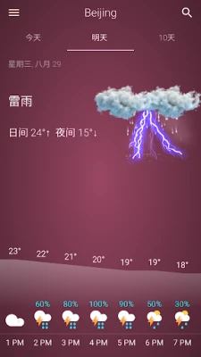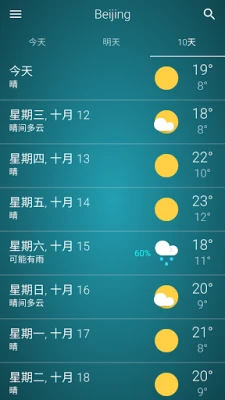 天气是一款设计精美、界面简洁的天气应用。它操作极其简单,只需轻点一下,即可轻松查看今日、明日及未来14天的详细天气预报。